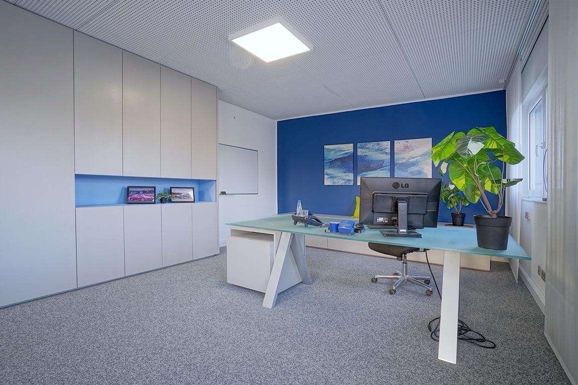 Hier arbeiten Sie repräsentativ, effizient und flexibel – in einer hellen Halle mit Showroomcharakter und idealer Erreichbarkeit.